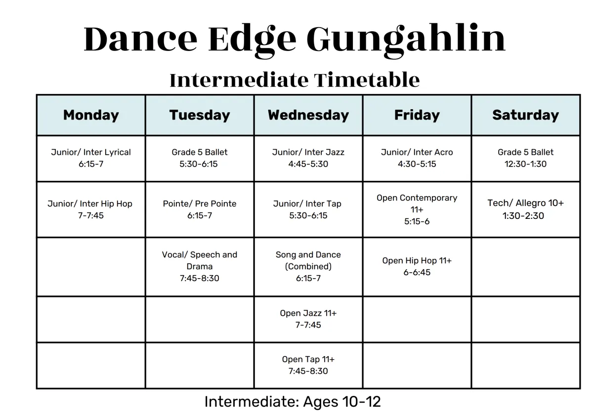 Dancers at this stage begin refining their technique, strength, and artistry. With more opportunities to challenge themselves, students can explore a variety of styles, build confidence, and develop personal expression—all in a supportive and encouraging environment